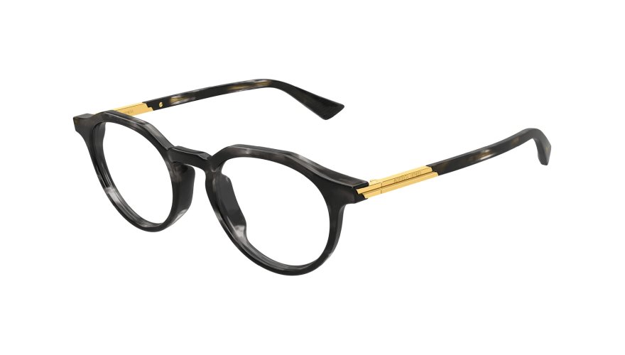 Formerne i Bottega Venetas brillestel er enkle, men har tyngde. De firkantede modeller står med klarhed og fasthed, de runde virker bløde, og cat eye-silhuetterne er trukket ned i en mere afdæmpet linje end hos de fleste modehuse. Farverne tager udgangspunkt i husets arbejde med læder. Den mørkebrune tone har dybden fra patineret skind, mens den sorte overflade er mat og rolig som blødt forarbejdet læder. Den grønne går igen som en signaturfarve, kendt fra husets tasker og accessories. Resultatet er en farvepalet, der føles forbundet til materialer, man kan røre ved, snarere end til flygtige sæsonfarver.