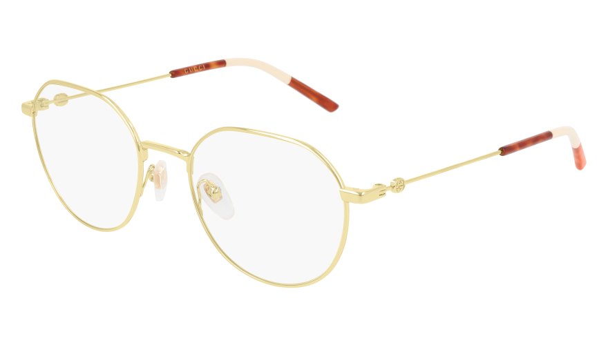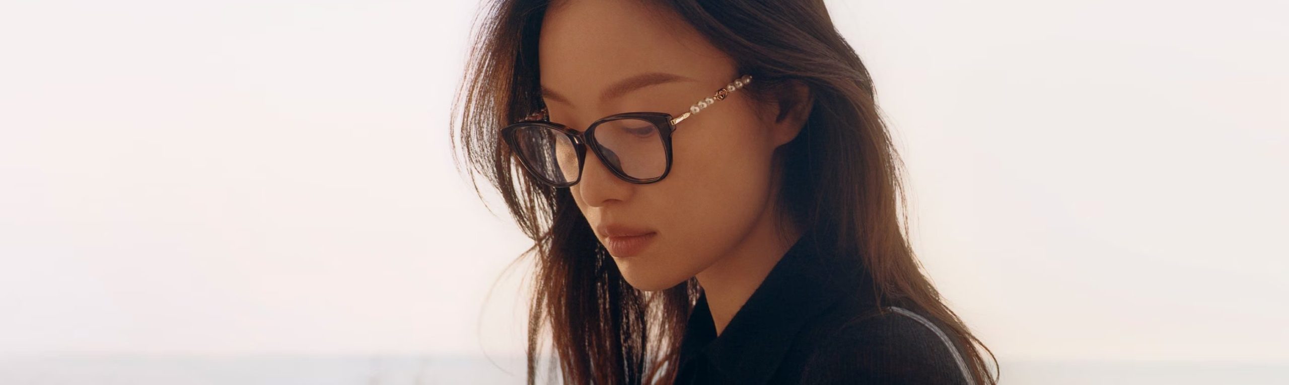 Gucci Eyewear viderefører fortællingen om mod og selvbevidsthed. Kollektionerne bevæger sig fra klassiske acetatstel med tydelige proportioner til dramatiske, oversized solbriller, der iscenesætter hele ansigtet. Brede stænger, metalliske kontraster og transparente lag giver volumen og energi, mens de grønne og røde striber samt det dobbelte G fungerer som ikoniske markører.